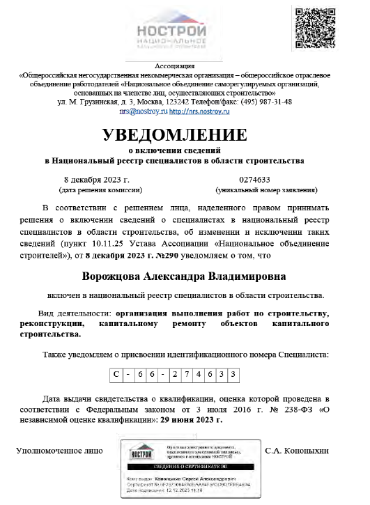Ворожцова Александра Владимировна (Судебный строительный эксперт)